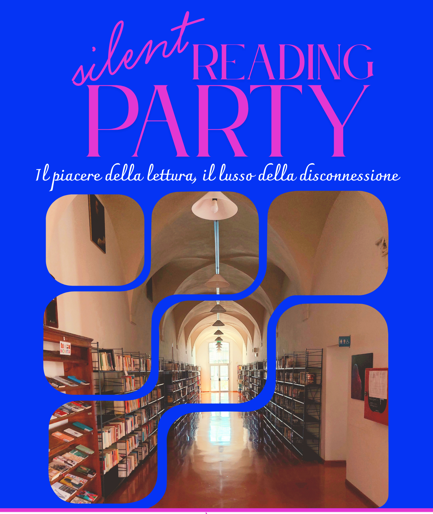Un Silent Reading Party è un raduno sociale in cui le persone si incontrano in uno spazio pubblico per leggere in silenzio il proprio libro, lasciando a casa dispositivi digitali, per condividere un’esperienza di lettura tranquilla e “disintossicazione digitale”, spesso concludendo con una breve chiacchierata sui libri letti. L’obiettivo è riscoprire il piacere di leggere insieme ma da soli, in un’atmosfera di pace e condivisione, allontanandosi dalla frenesia quotidiana…buona lettura!
